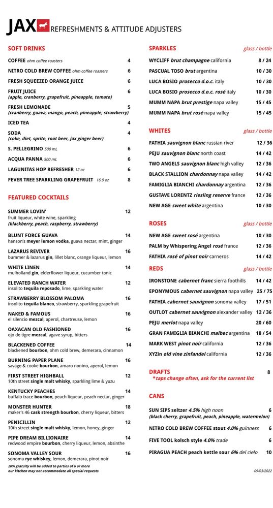 Introducing the Menu at Jax Diner